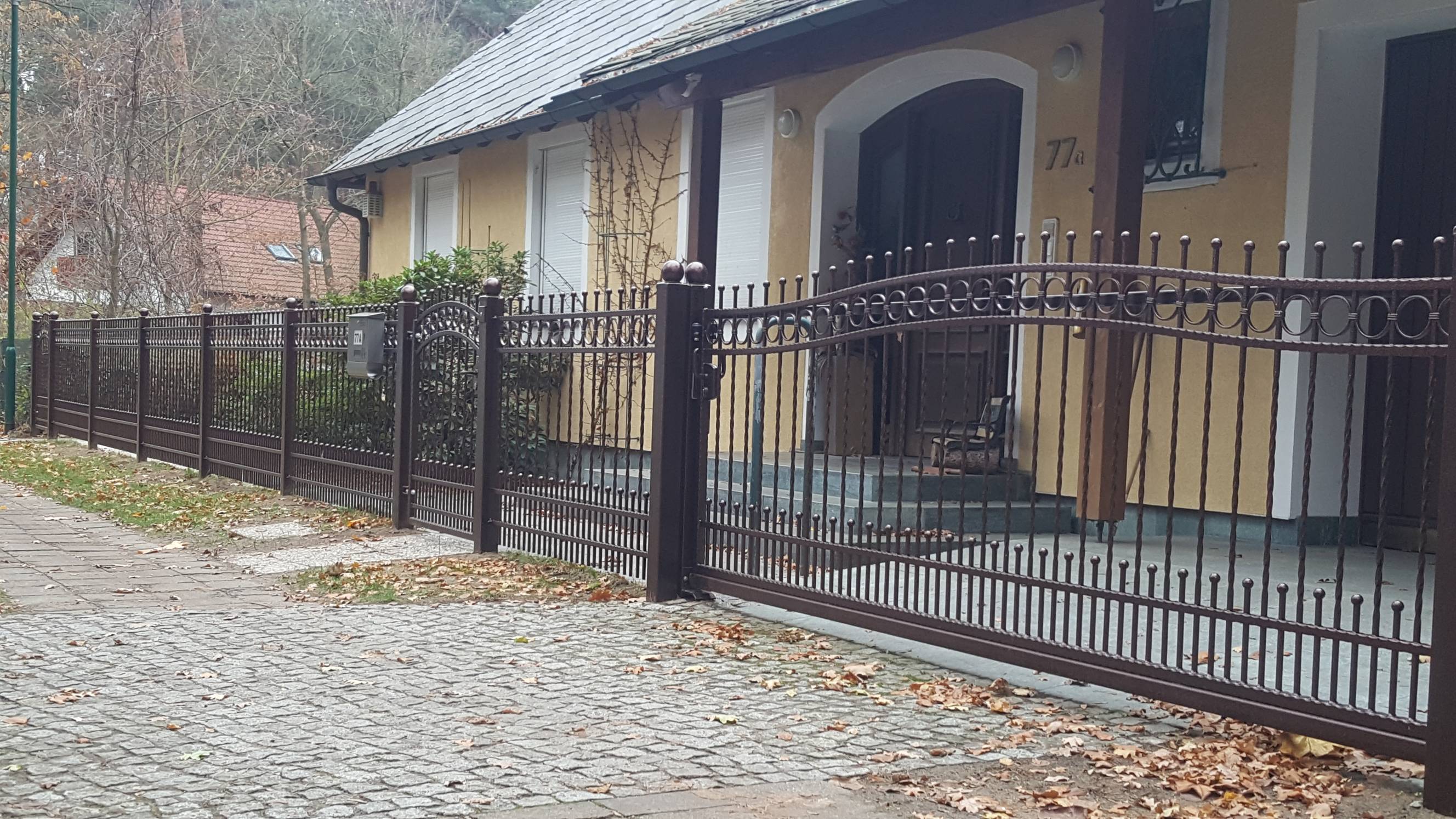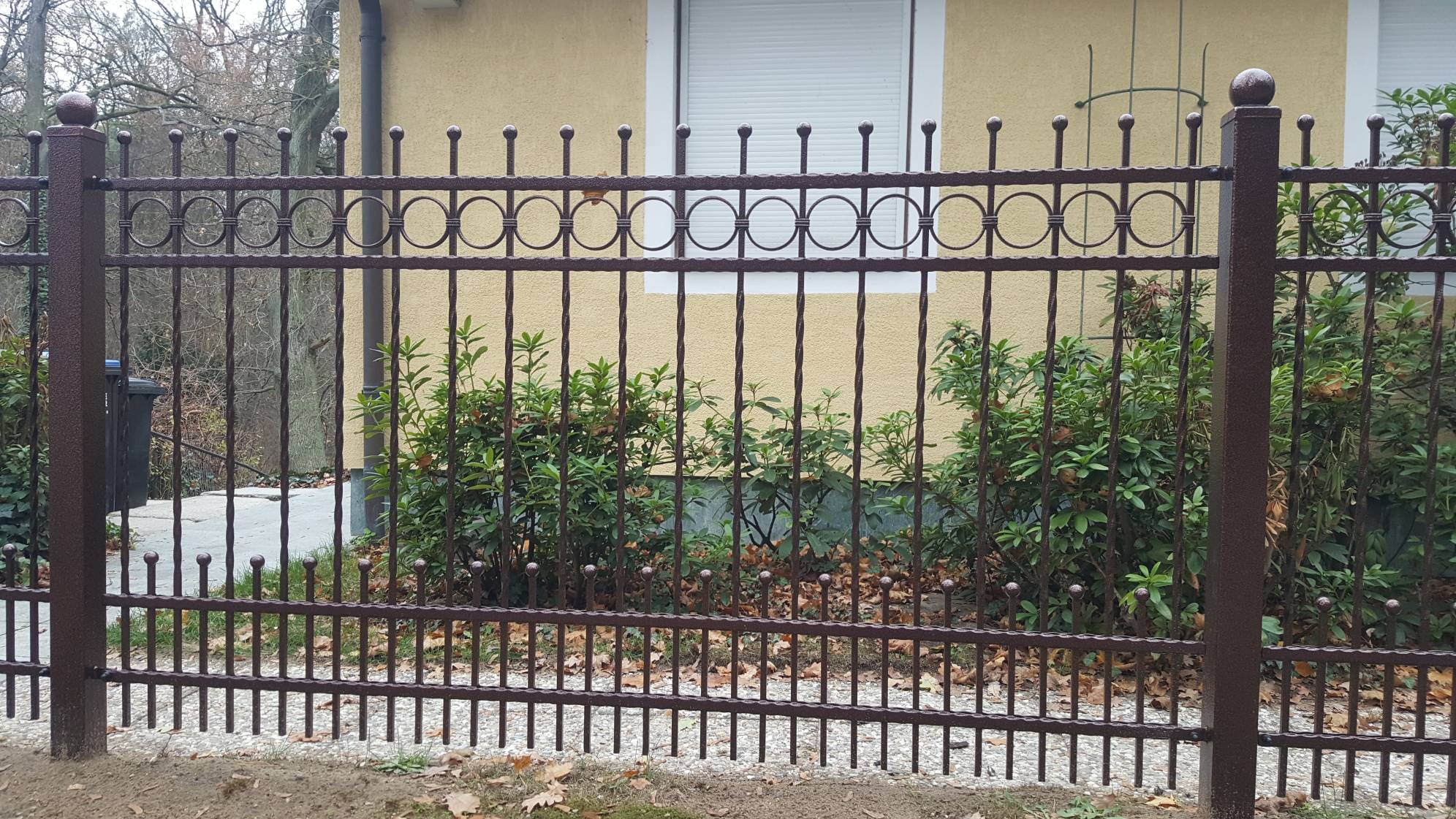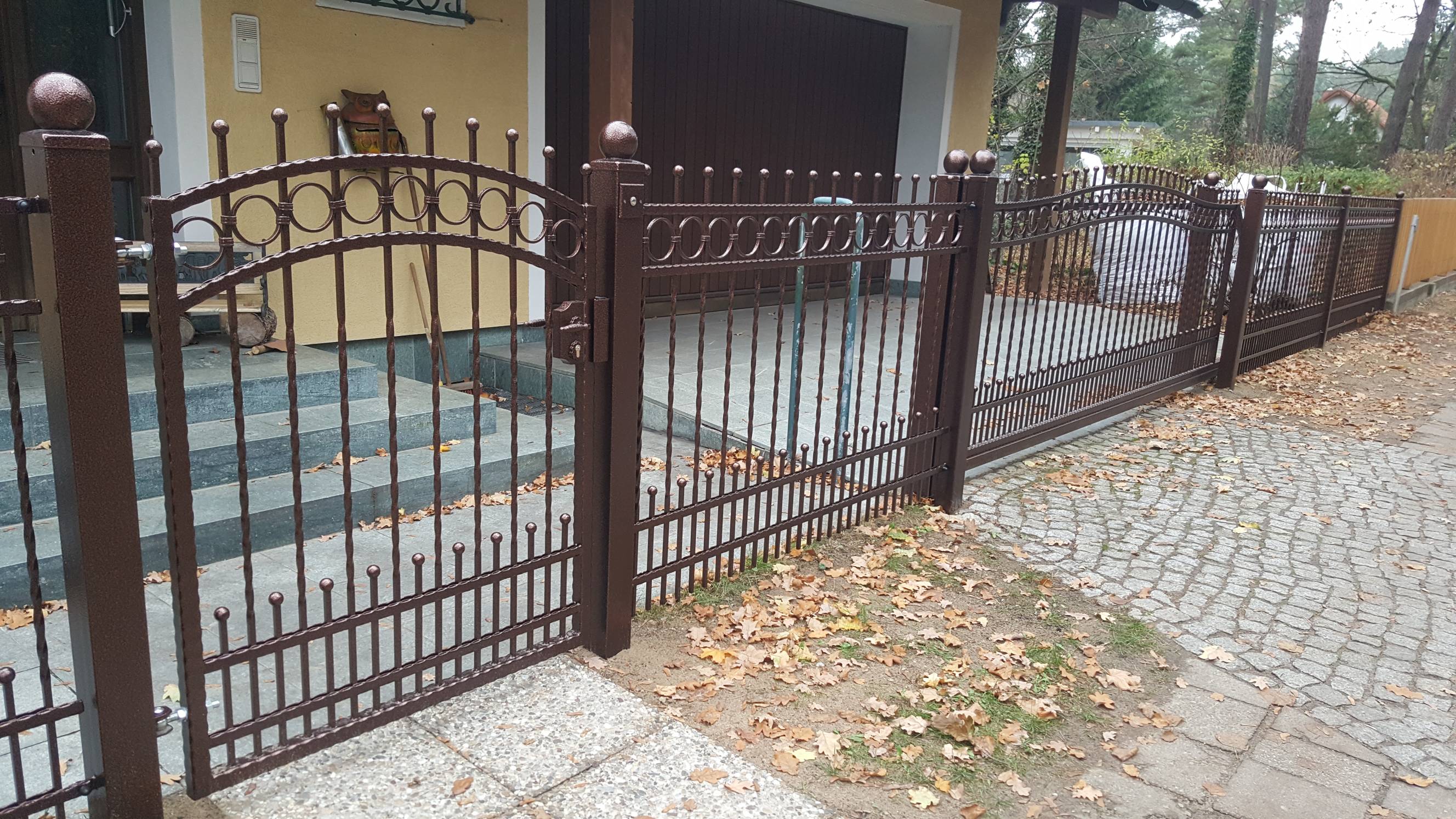 Die Anlage ist 26,50 m lang und besteht aus einem 4 m breiten Schiebetors, zwei Pforten und neun Zaunfeldern.