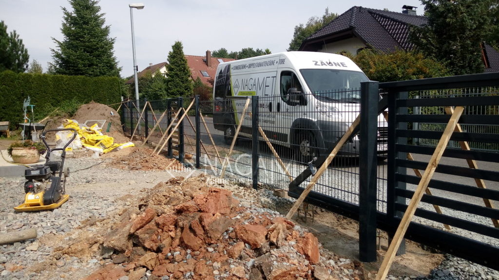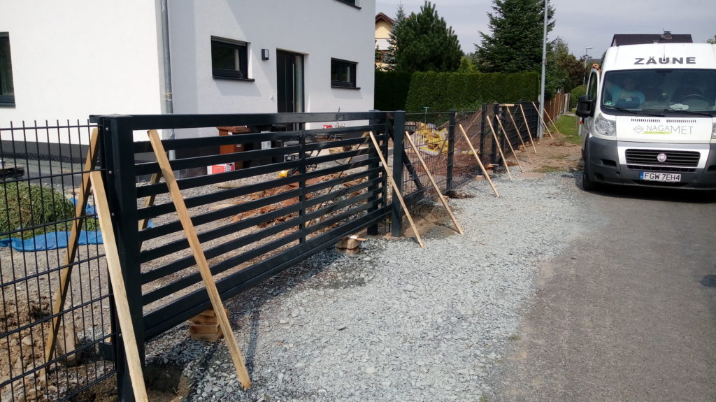 Wir haben diese Anlage im August 2017 in Chemnitz gebaut. Diese ist 1,20 m hoch und insgesamt 21,30 m lang. Das Schiebetor ist 4 m und die Pforte 90 cm breit.